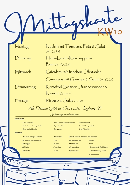 - Speisekarte Mittagessen